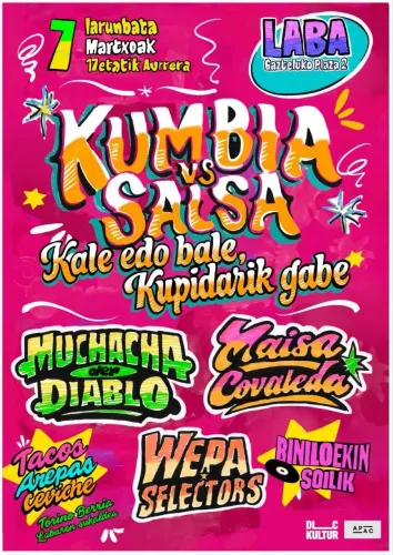 Emakumearen Nazioarteko Egunaren harira, binilo pintxada berezia izanen dugu Laban: Muchacha der diablo, Marisa Covaleda eta Wepa selectors. Afaltzeko: takoak, arepak eta ceviche.